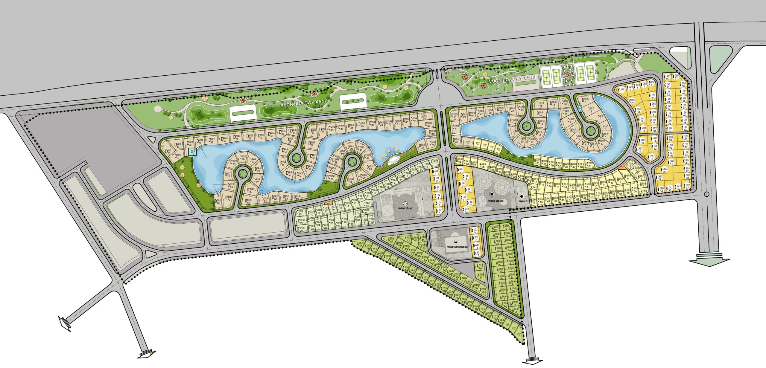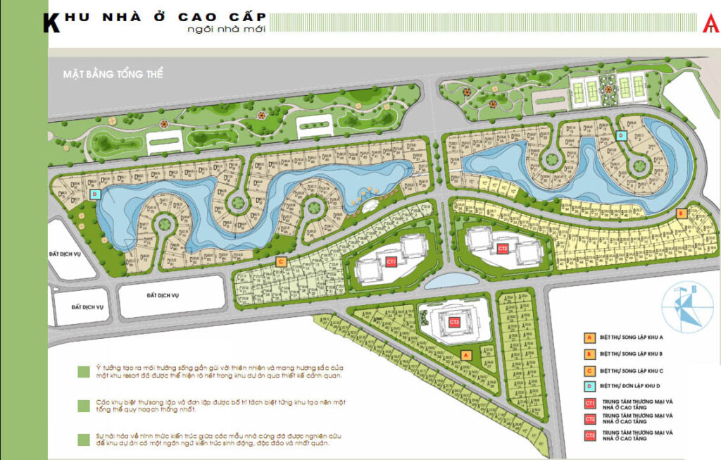 Loại hình phát triển: 258 lô biệt thự chia thành 4 khu, gồm biệt thự song lập và đơn lập.